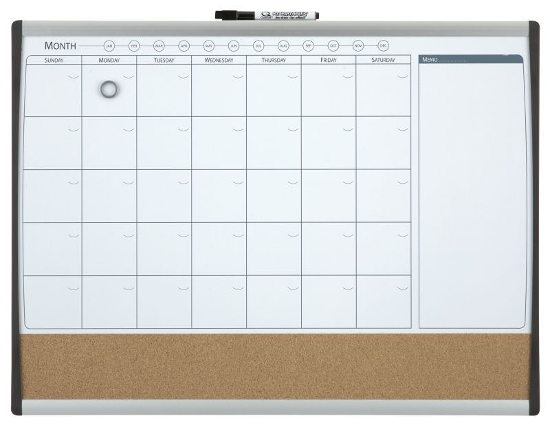 Комбинирана дъска от две части -корк и бяла дъска. Бялата дъска е магнитна: месечен план
