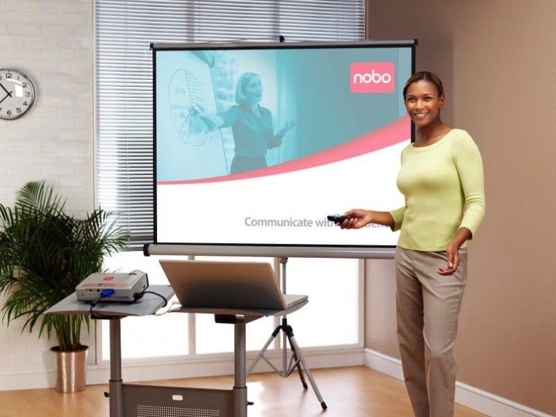 На стойка. 4:3 и 16:10 формата. Матова бяла повръхност за остро и детаилно изображение. Ъгъл на видимост 160 градуса.