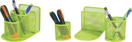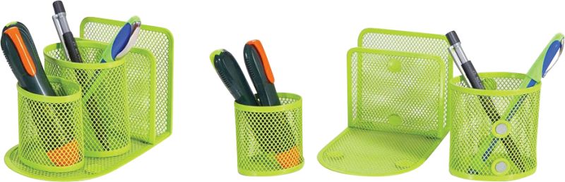 Изработен от висококачествена метална, мрежа. Уникален дизайн с възможност, за разместване и комбиниране на, цветовете. Два моливника и отделение, за бележки. зелен