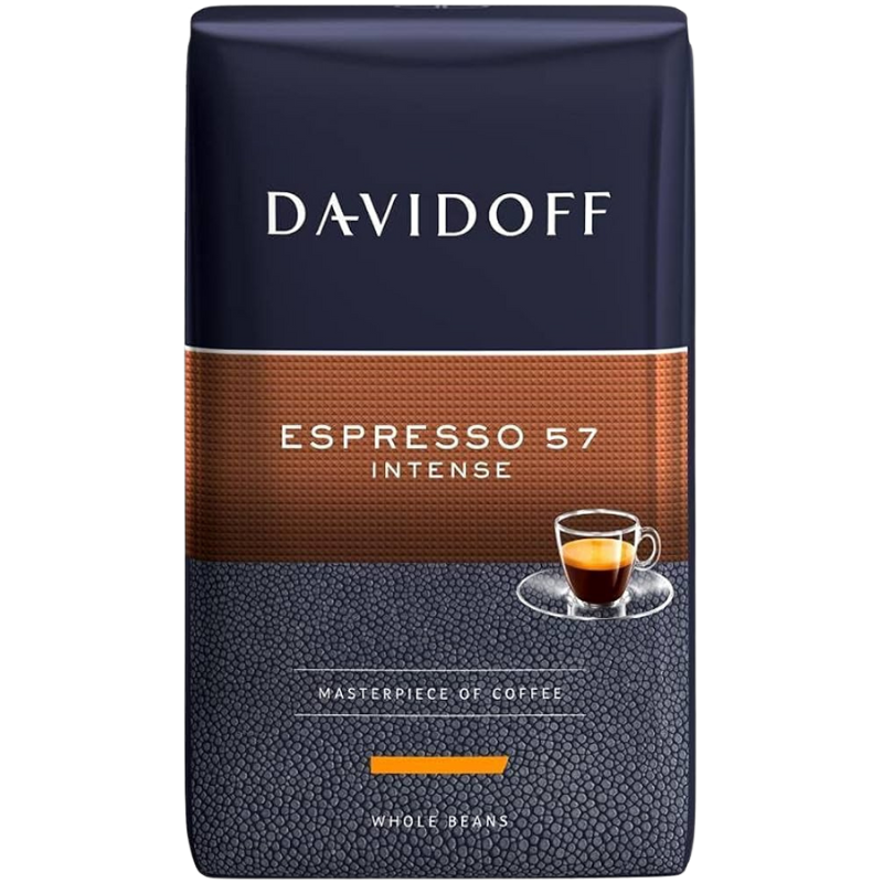 Davidoff Café Espresso 57 е внимателно подбран бленд от висококачествени зърна арабика, изпечени при оптимална температура за постигане на интензивен вкус и наситен аромат. Цифрата 57 символизира перфектния баланс между време и температура на изпичане, който гарантира богат вкус, леко пикантни нотки и кадифена крема.