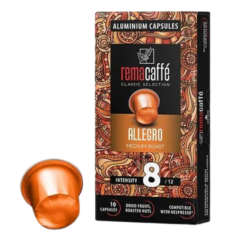 Опаковката съдържа 10 алуминиеви капсули REMACAFFÉ Allegro с които да направите 10 напитки