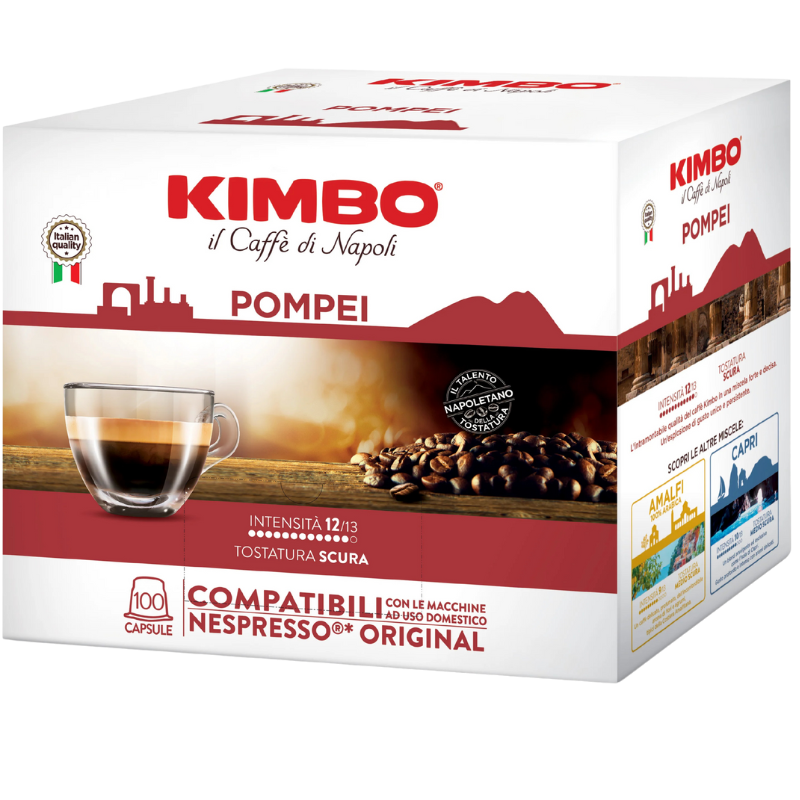 „Kimbo Pompei – 100 капсули Nespresso с интензивен вкус, плътно тяло и гъста крема. Италианско еспресо с истински неаполитански характер.“ ☕???