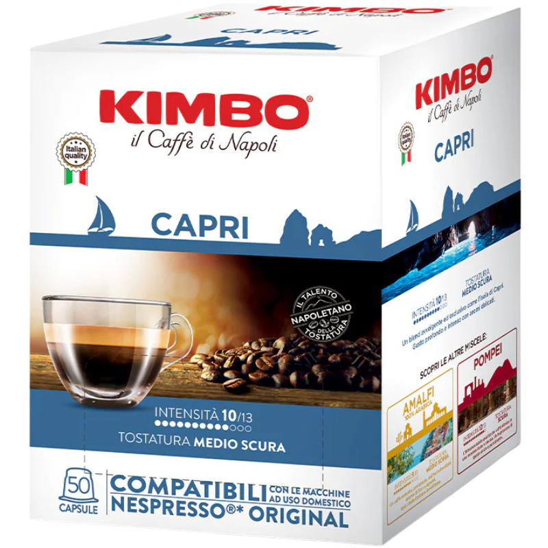 „Kimbo Capri – 50 капсули Nespresso с балансиран вкус, свеж аромат и кадифена крема. Италианско кафе, вдъхновено от Средиземноморието.“ ☕???
