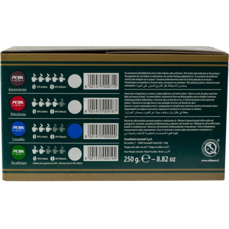 ? Pera Enjoy Crema Bar предлага класическо италианско кафе изживяване. Всяка капсула разкрива плътен вкус, наситен аромат и кадифена крема, които превръщат всяка глътка в истинска наслада. Селекцията от Арабика и Робуста създава перфектен баланс между сила и мекота.