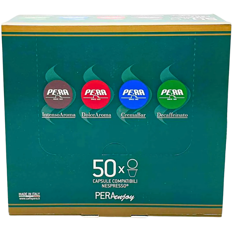 "Pera Enjoy Crema Bar – 50 капсули за Nespresso с богат вкус, плътно тяло и гъста крема. Италианско кафе у дома всеки ден." ☕??✨
