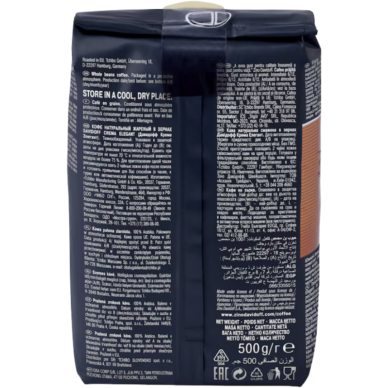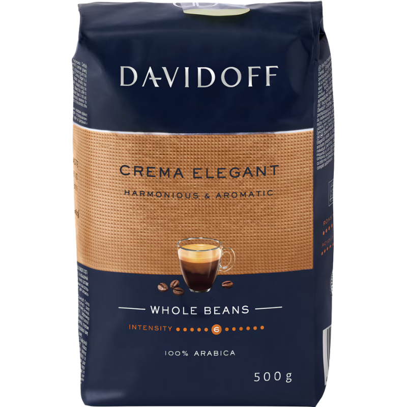 Насладете се на изискан вкус с Davidoff Café Crema Elegant! ☕️ Този 500-грамов пакет съдържа висококачествени зърна, подбрани за приготвяне на перфектно кремообразно кафе. ☕️