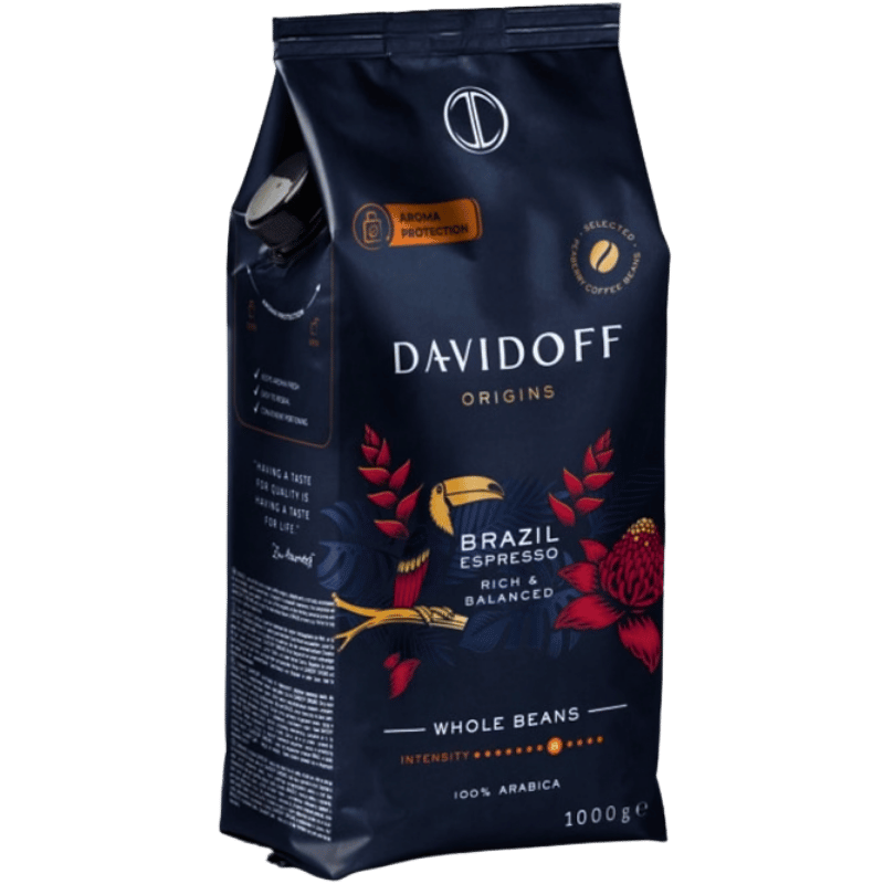 Насладете се на изискания вкус на Davidoff Brazil – 100% Арабика кафе на зърна, внимателно подбрано и изпечено, за да разкрие богатия и балансиран аромат на бразилската кафеена култура. ☕
