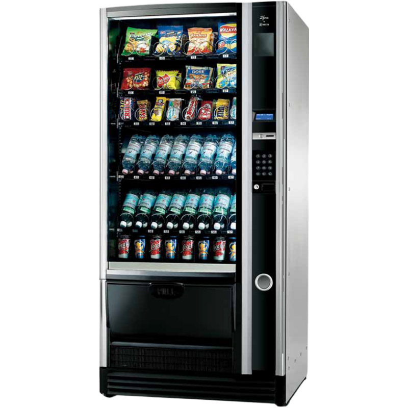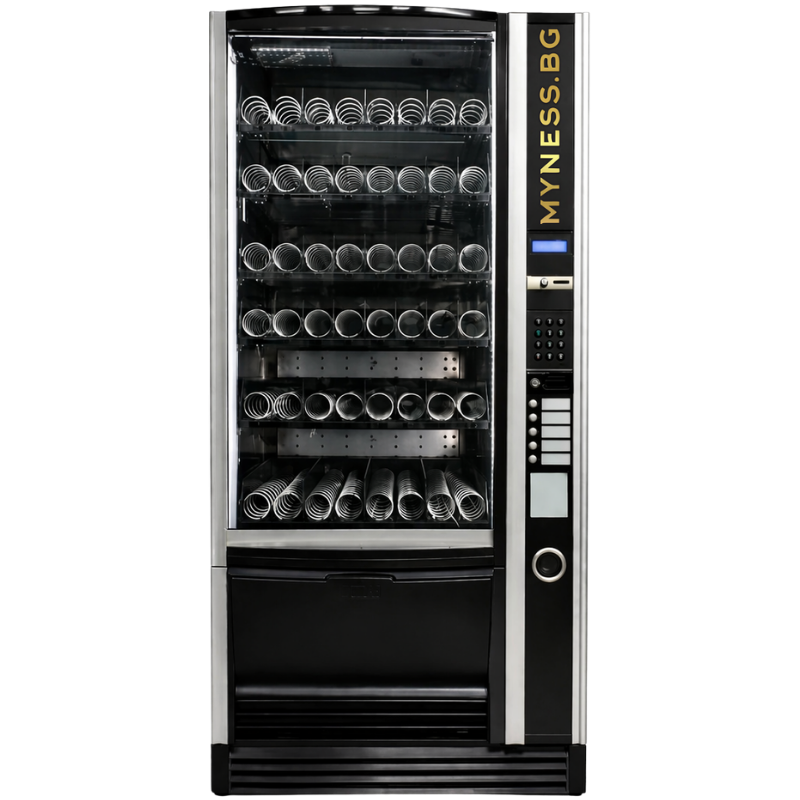 Вендинг автомат Necta Sfera, 6 редов, е практично решение за продажба на пакетирани храни, напитки и различни продукти в офиси, търговски обекти, училища и обществени пространства.