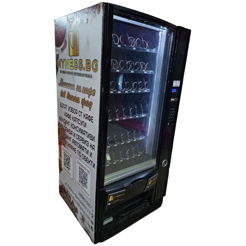 Подходящ за вендинг оператори, фирми, офиси, училища, производствени бази и търговски обекти, които търсят автомат за продажба на пакетирани продукти чрез самообслужване.